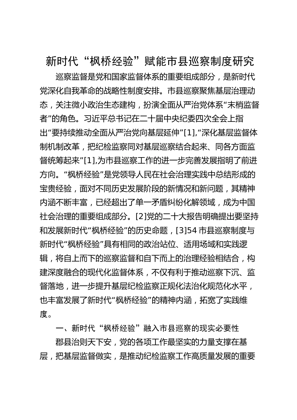 新時代“楓橋經(jīng)驗”賦能市縣巡察制度研究