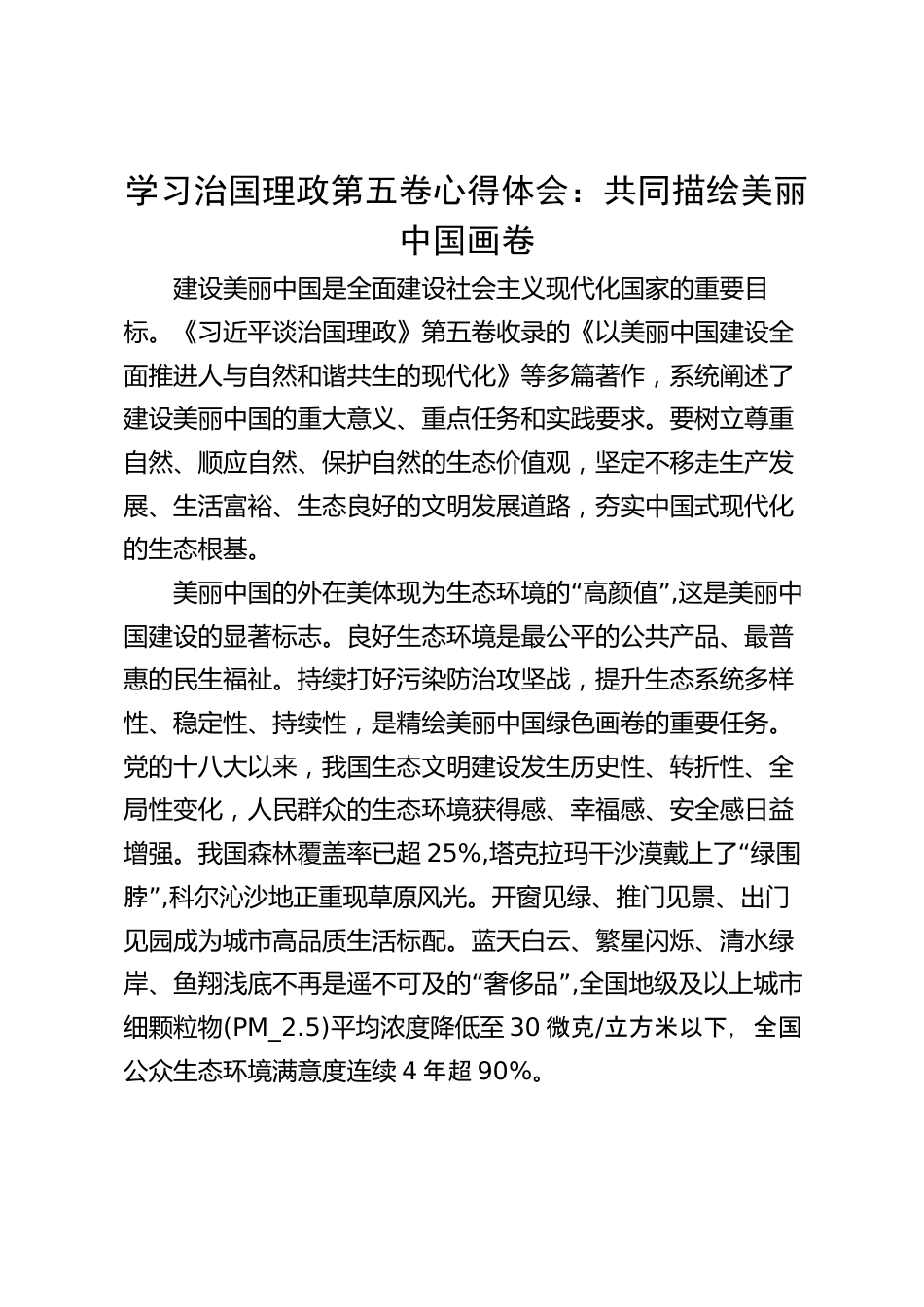 學習治國理政第五卷心得體會:共同描繪美麗中國畫卷