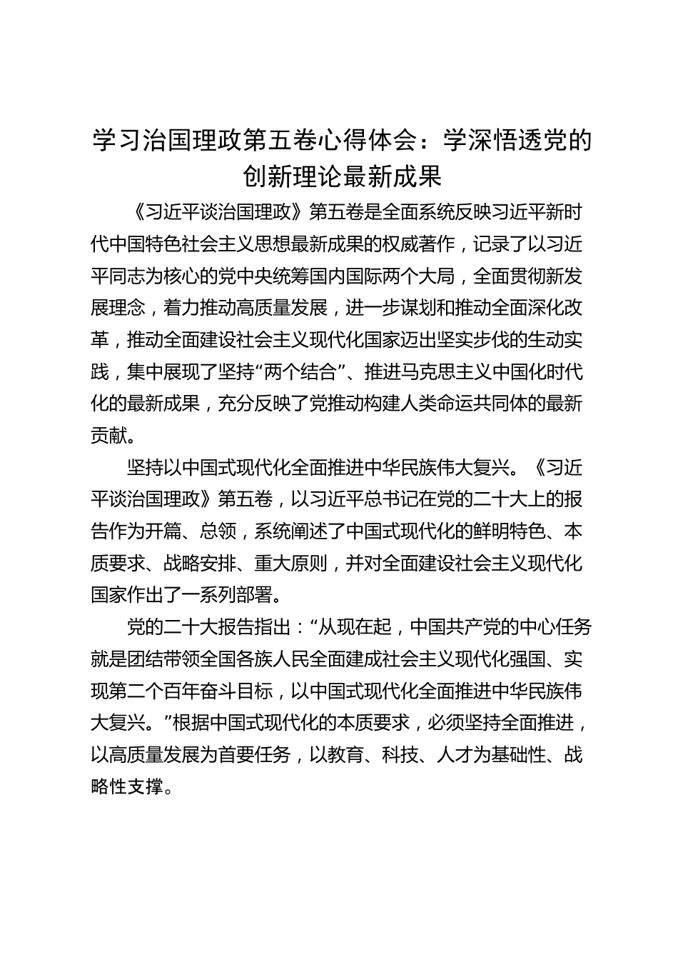 學(xué)習(xí)治國理政第五卷心得體會:學(xué)深悟透黨的創(chuàng)新理論最新成果