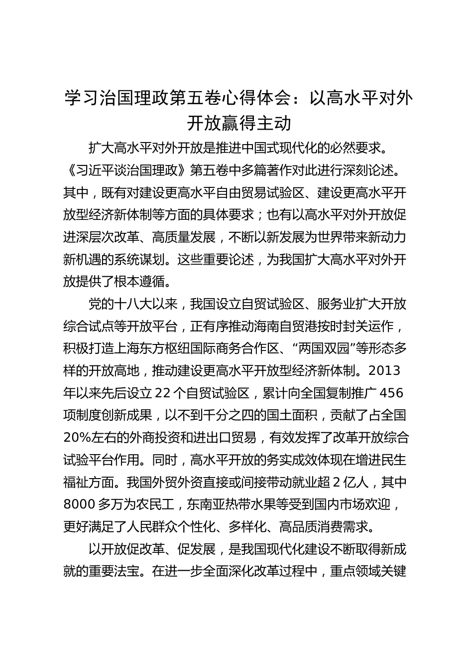 學(xué)習(xí)治國理政第五卷心得體會:以高水平對外開放贏得主動