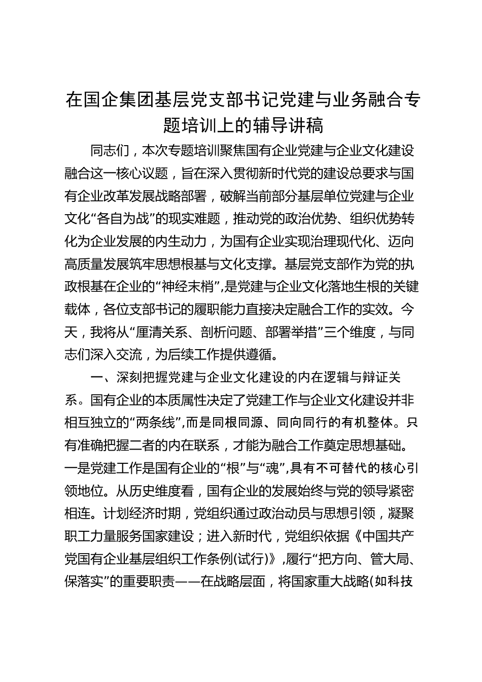在國企集團(tuán)基層黨支部書記黨建與業(yè)務(wù)融合專題培訓(xùn)上的輔導(dǎo)講稿