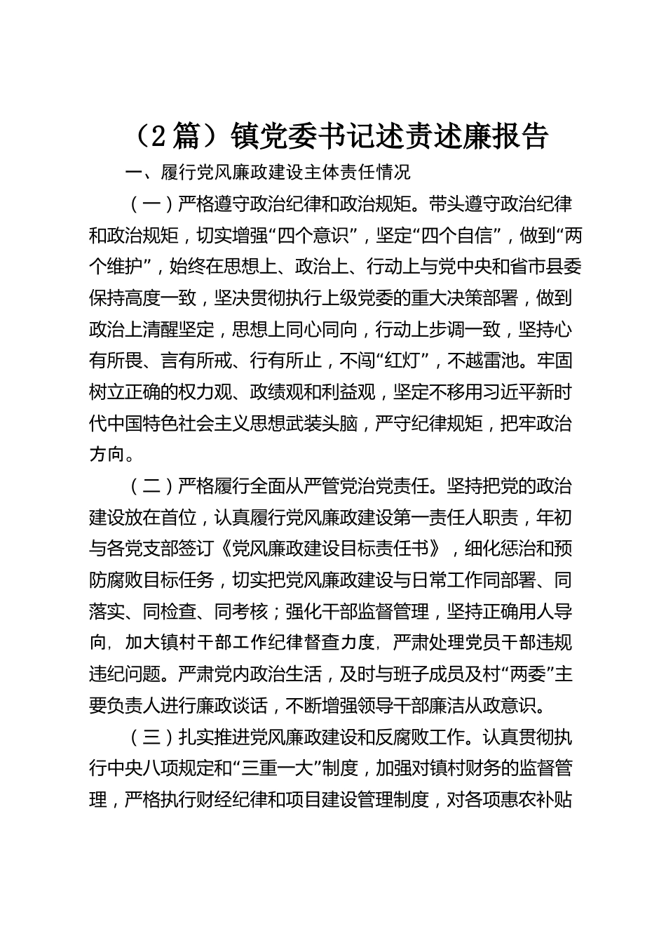 (2篇)鎮(zhèn)黨委書記述責(zé)述廉報(bào)告