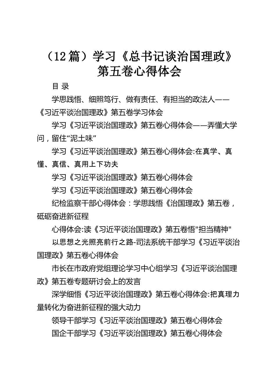 (12篇)學(xué)習(xí)《總書記談治國理政》第五卷心得體會(huì)目錄——學(xué)思踐悟、細(xì)照篤行、做有責(zé)任、有擔(dān)當(dāng)?shù)恼ㄈ恕读?xí)近平談治國理政》第五卷學(xué)習(xí)體會(huì)學(xué)習(xí)《習(xí)近平談治國理政》第五卷心得體會(huì)——弄懂大學(xué)“”問,留住泥土味學(xué)習(xí)《習(xí)近平談治國理政》第五卷心得體會(huì):在真學(xué)、真懂、真信、真用上下功夫?qū)W習(xí)《習(xí)近平談治國理政》第五卷心得體會(huì)學(xué)習(xí)《習(xí)近平談治國理政》第五卷心得體會(huì)紀(jì)檢監(jiān)察干部心得體會(huì):學(xué)思踐悟《治國理政》第五卷,砥礪奮進(jìn)新征程心得體會(huì):讀《習(xí)近平談治國理政》第五卷悟"擔(dān)當(dāng)精神"以思想之光照亮前行之路-司法系統(tǒng)干部學(xué)習(xí)《習(xí)近平談治國理政》第五卷心得...