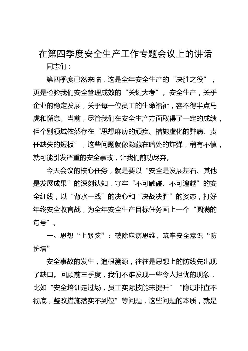 2025年在第四季度安全生產(chǎn)工作專題會議上的講話