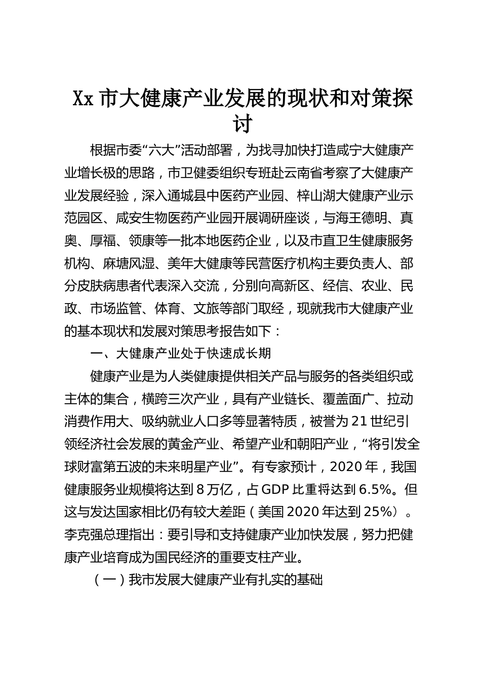 Xx市大健康產(chǎn)業(yè)發(fā)展的現(xiàn)狀和對(duì)策探討