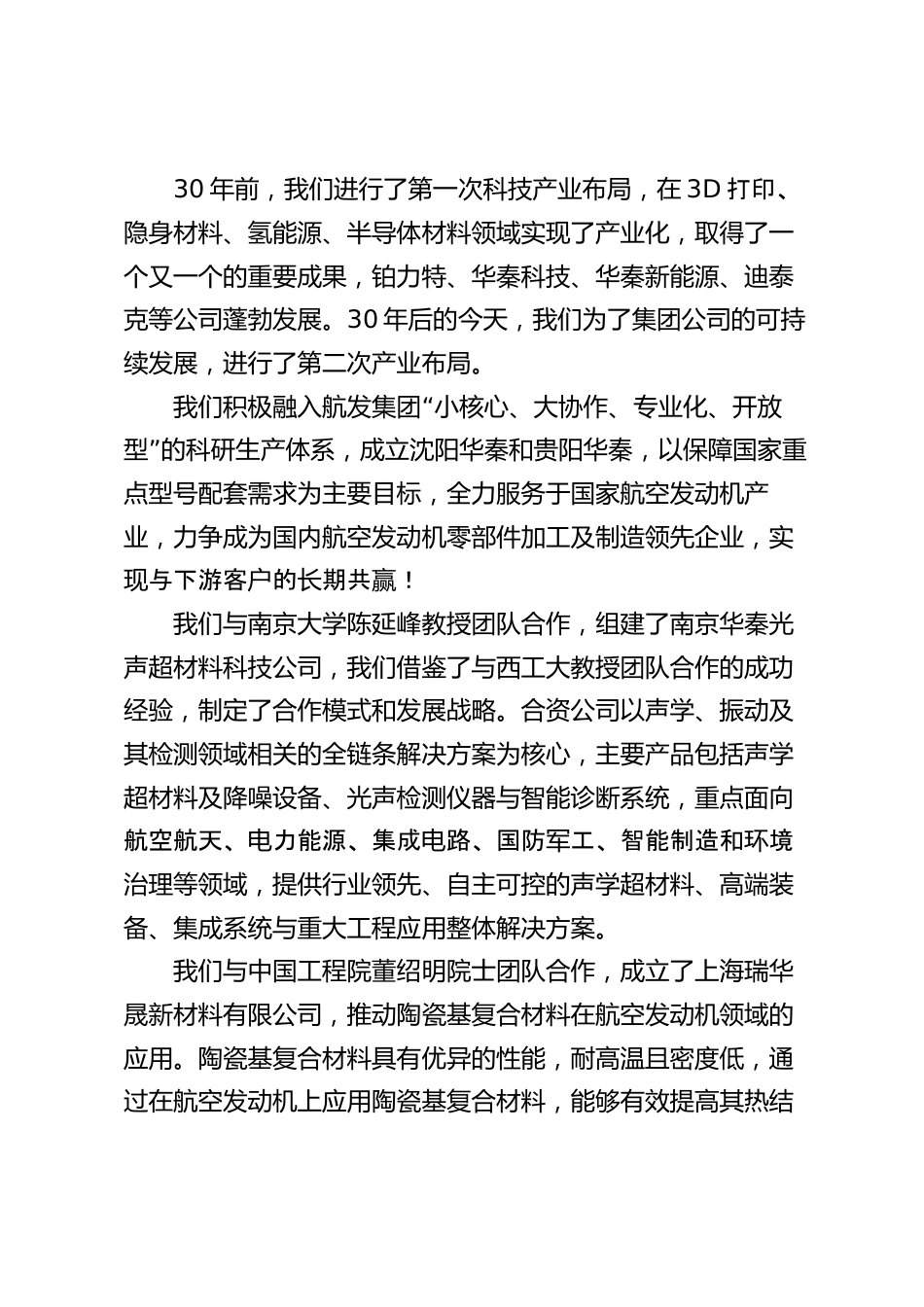 董事長在公司總結表彰大會上的講話:凝心聚力堅定信心再創(chuàng)輝煌陜西華秦科技實業(yè)股份有限公司董事長尊敬的周首席,尊敬的各位老師,各位同仁:大家下午好!新年伊始,萬象更新!很高興,今天和大家在一起,共話華秦科技2023年的成就和經(jīng)驗,共謀2024年的發(fā)展計劃和奮斗目標,共創(chuàng)百年華秦的美好未來!在此,我首先向受到表彰的先集體和先個人表示烈進進熱的祝賀和衷心的感謝!在過去的一年里,華秦人埋頭苦干,不懈努力,順利完成公司各項科研和生產(chǎn)任務,為華秦事業(yè)的全面發(fā)展,為國家現(xiàn)代化和國防現(xiàn)代化做出了重大貢獻!我謹代表公司董事會,向華秦科技全體同仁致以最親...