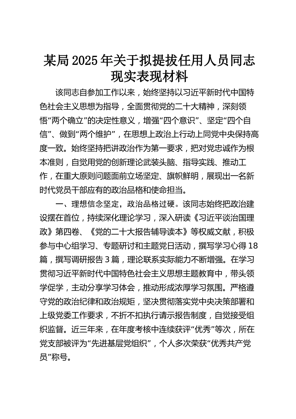 某局2025年關于擬提拔任用人員同志現實表現材料