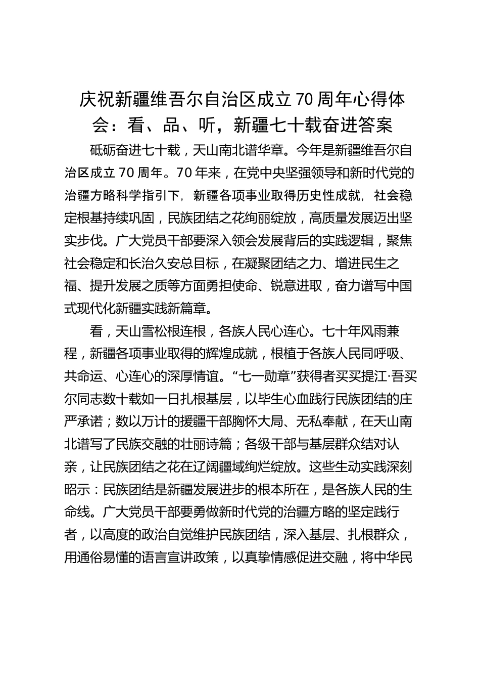 慶祝新疆維吾爾自治區(qū)成立70周年心得體會:看、品、聽,新疆七十載奮進答案