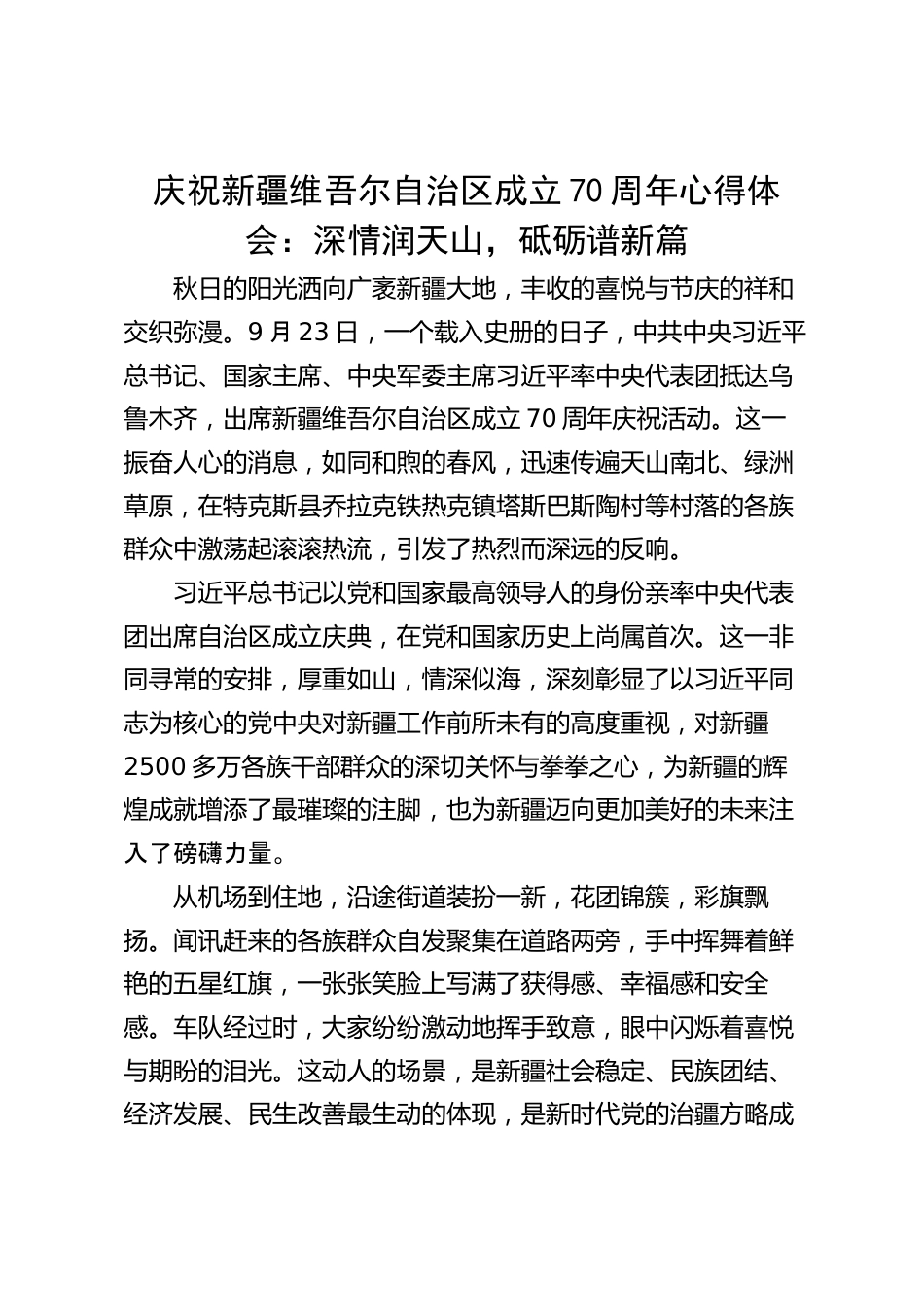 慶祝新疆維吾爾自治區(qū)成立70周年心得體會(huì):深情潤天山,砥礪譜新篇