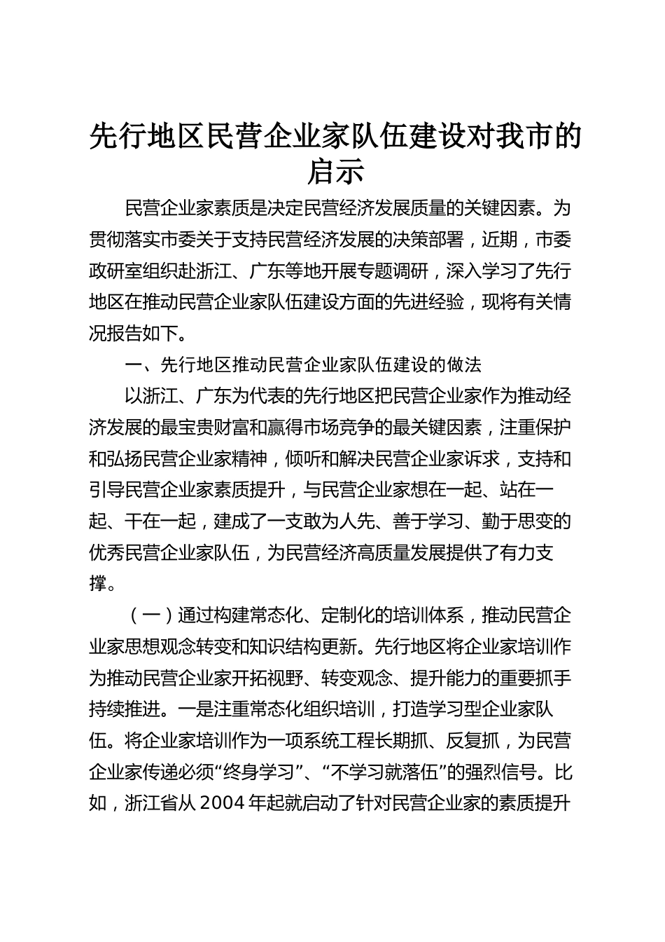 先行地區(qū)民營企業(yè)家隊伍建設(shè)對我市的啟示