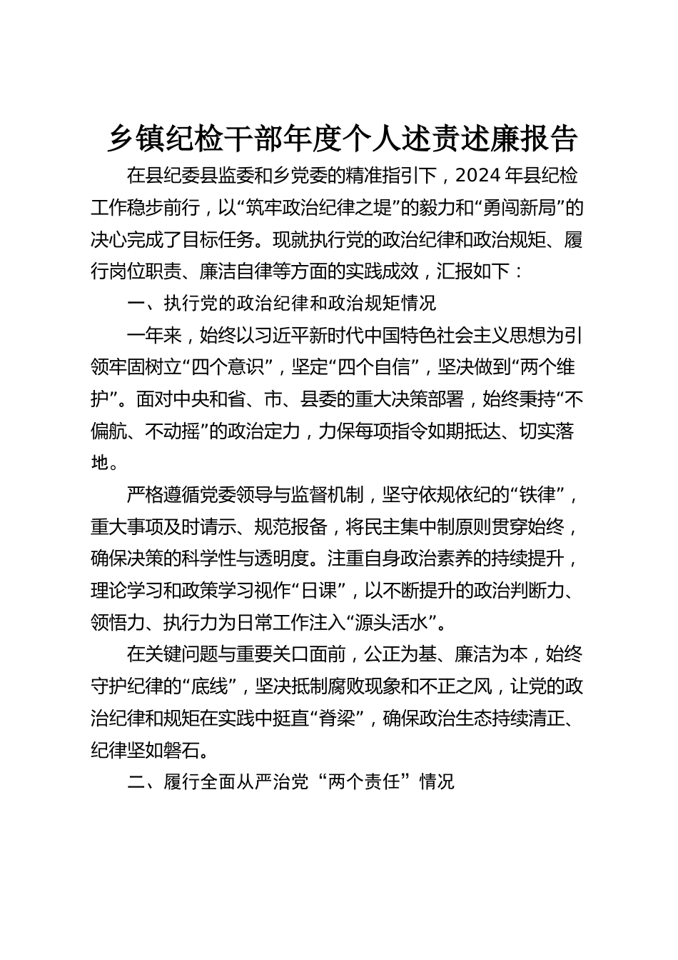 鄉(xiāng)鎮(zhèn)紀(jì)檢干部年度個人述責(zé)述廉報告