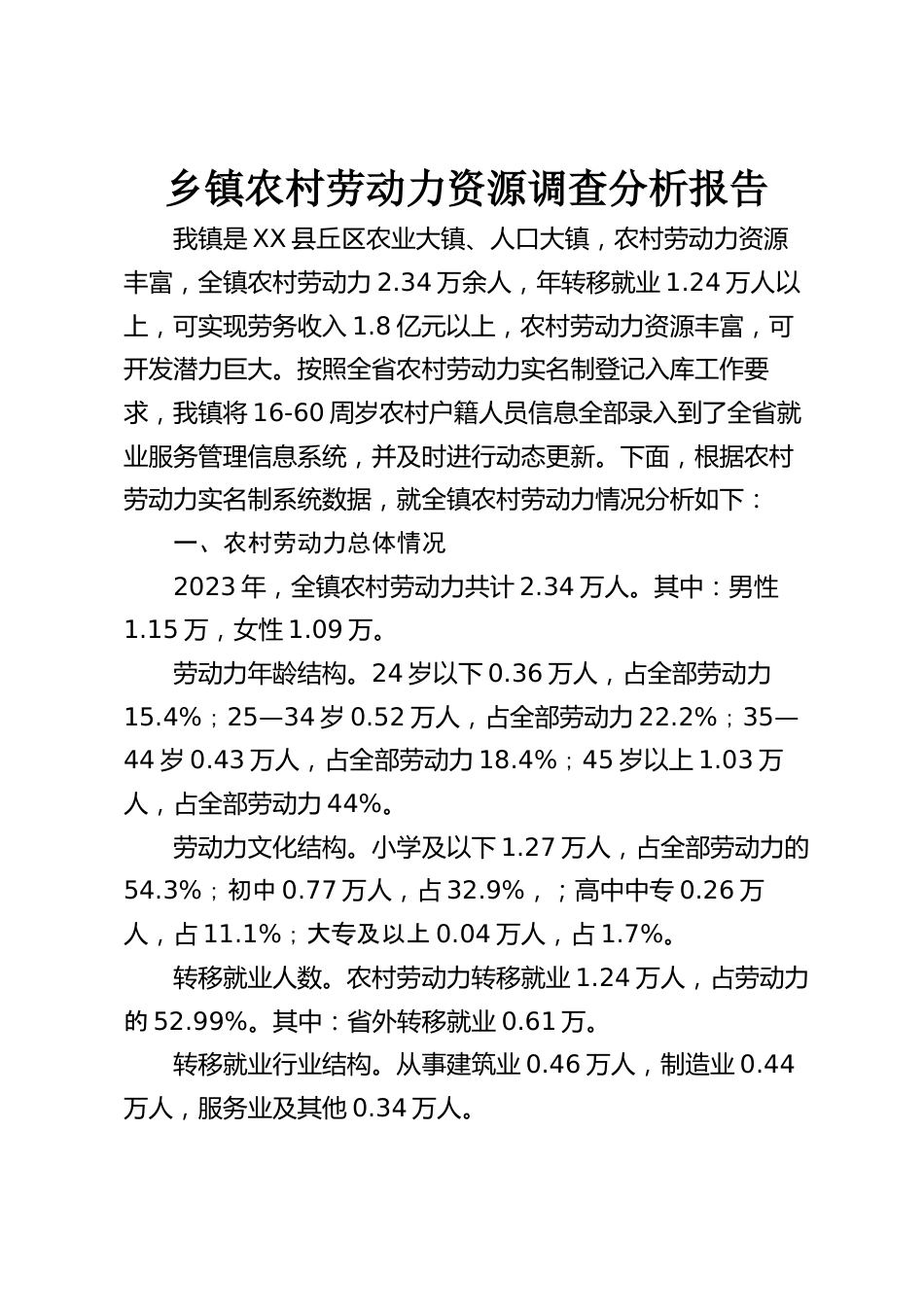 鄉(xiāng)鎮(zhèn)農(nóng)村勞動(dòng)力資源調(diào)查分析報(bào)告VIP免費(fèi)