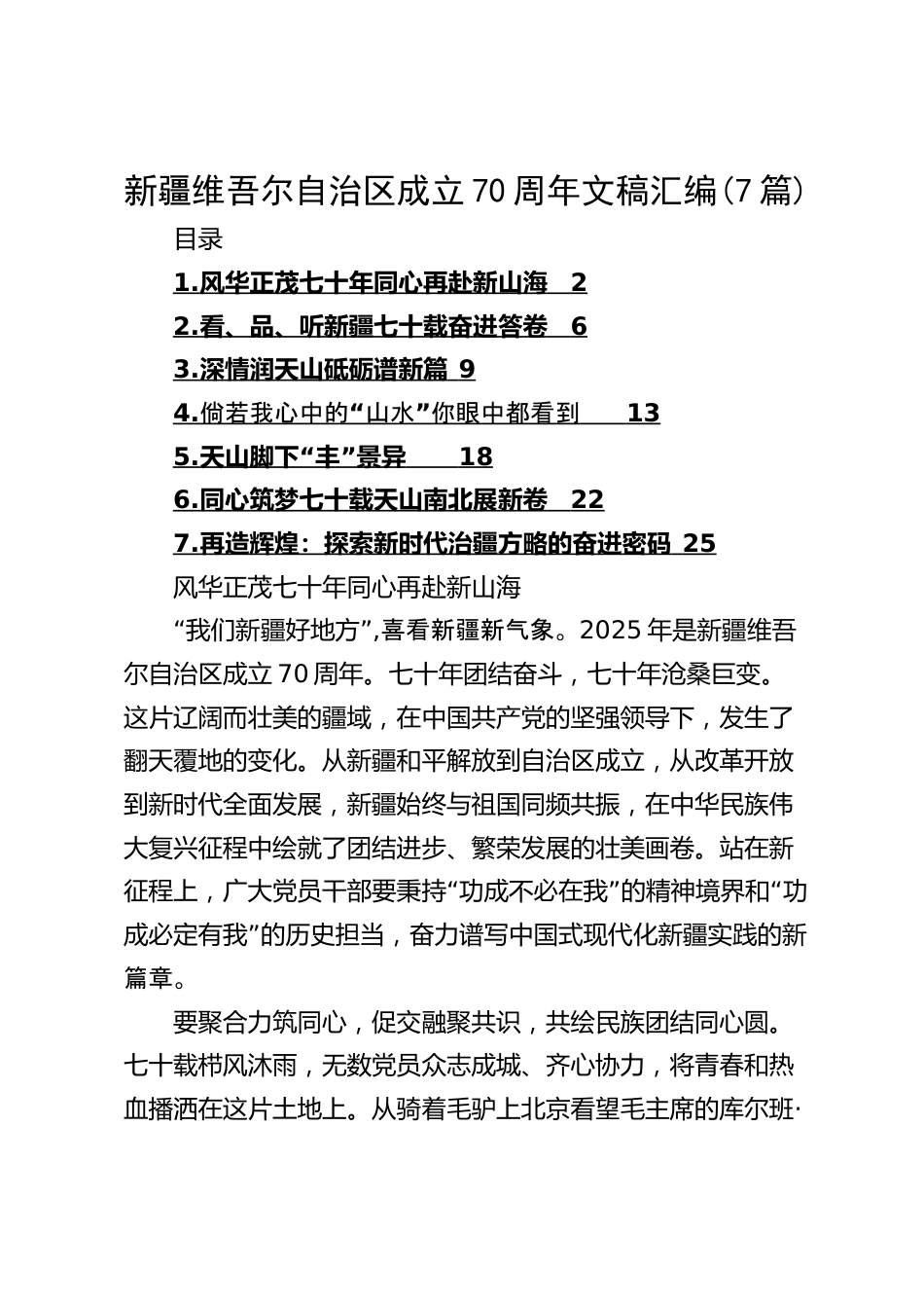 新疆維吾爾自治區(qū)成立70周年文稿匯編(7篇)