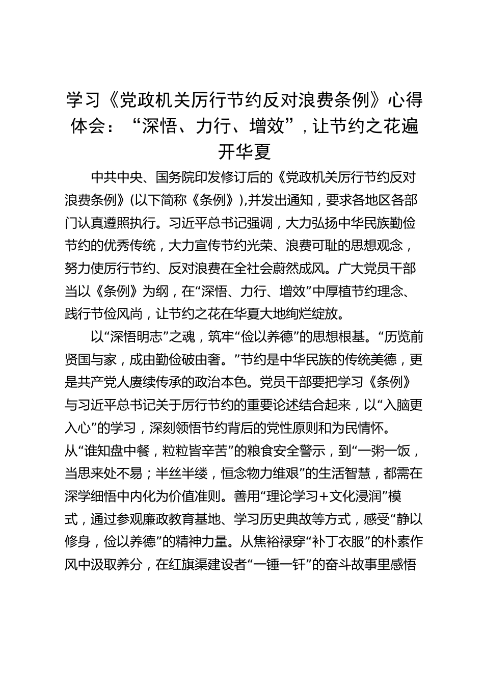 學(xué)習(xí)《黨政機(jī)關(guān)厲行節(jié)約反對(duì)浪費(fèi)條例》心得體會(huì):“深悟、力行、增效”,讓節(jié)約之花遍開華夏