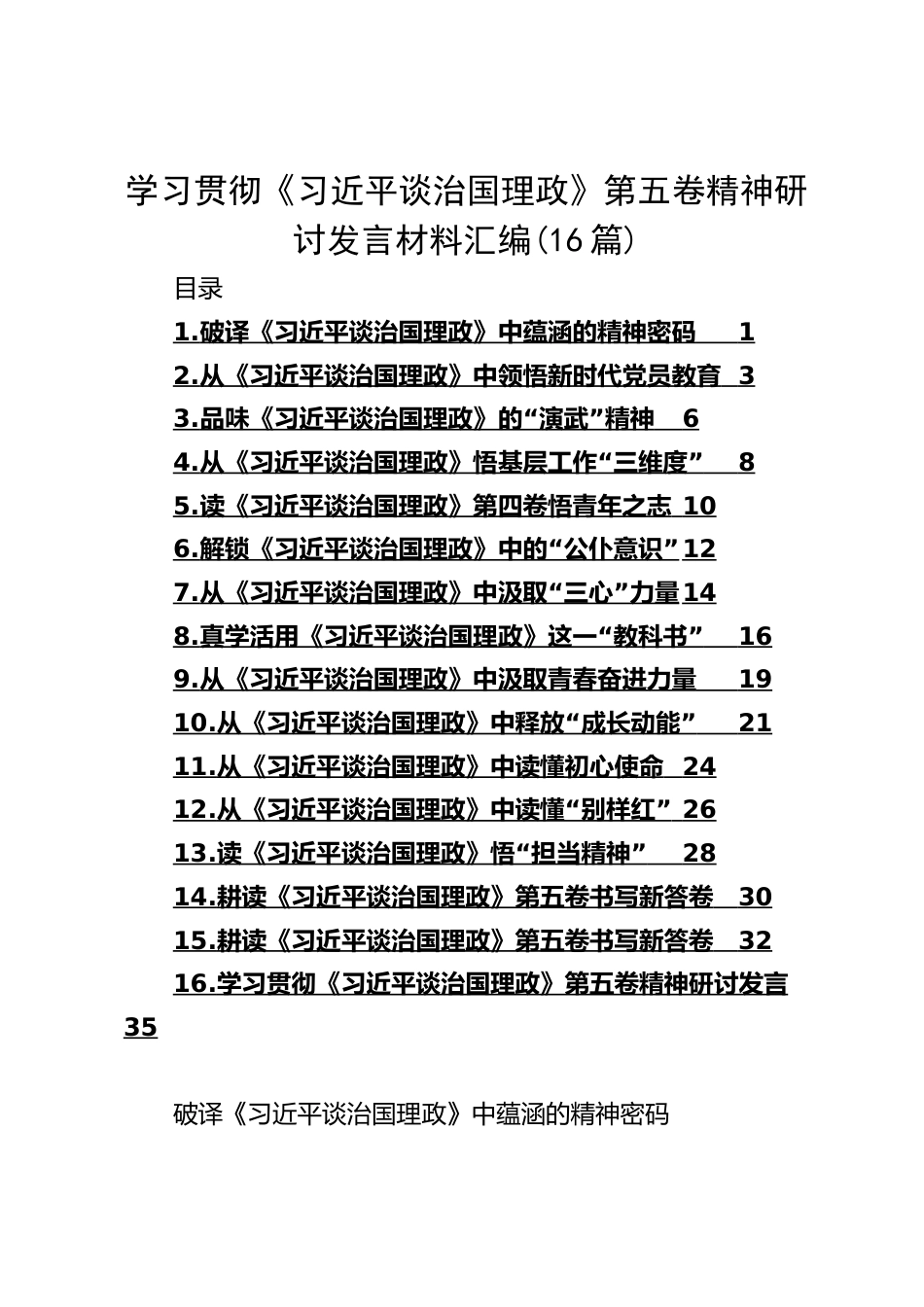 學習貫徹《習近平談治國理政》第五卷精神研討發(fā)言材料匯編(16篇)