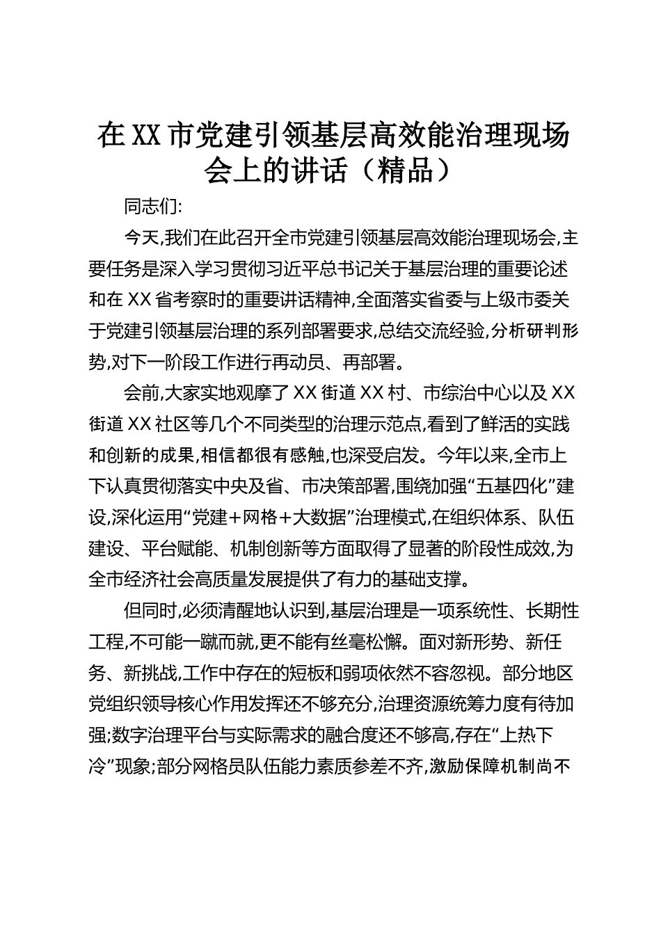 在XX市黨建引領(lǐng)基層高效能治理現(xiàn)場(chǎng)會(huì)上的講話(精品)