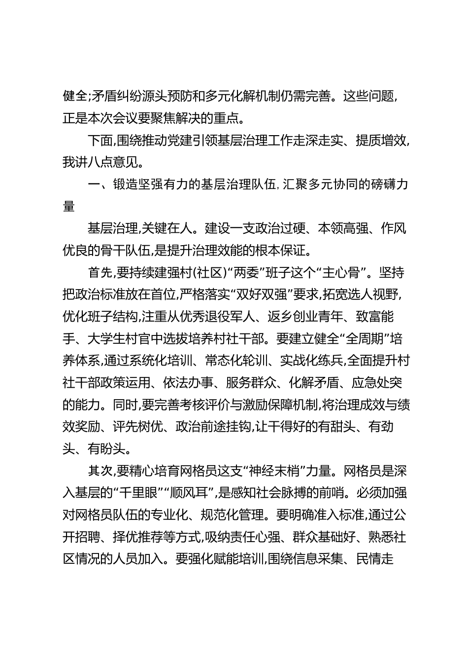 在XX市黨建引領(lǐng)基層高效能治理現(xiàn)場(chǎng)會(huì)上的講話(精品)同志們:今天,我們?cè)诖苏匍_(kāi)全市黨建引領(lǐng)基層高效能治理現(xiàn)場(chǎng)會(huì),主要任務(wù)是深入學(xué)習(xí)貫徹習(xí)近平總書記關(guān)于基層治理的重要論述和在XX省考察時(shí)的重要講話精神,全面落實(shí)省委與上級(jí)市委關(guān)于黨建引領(lǐng)基層治理的系列部署要求,總結(jié)交流經(jīng)驗(yàn),分析研判形勢(shì),對(duì)下一階段工作進(jìn)行再動(dòng)員、再部署。會(huì)前,大家實(shí)地觀摩了XX街道XX村、市綜治中心以及XX街道XX社區(qū)等幾個(gè)不同類型的治理示范點(diǎn),看到了鮮活的實(shí)踐和創(chuàng)新的成果,相信都很有感觸,也深受啟發(fā)。今年以來(lái),全市上下認(rèn)真貫徹落實(shí)中央及省、市決策部署,“”圍繞加強(qiáng)五基四化建設(shè),“深化...