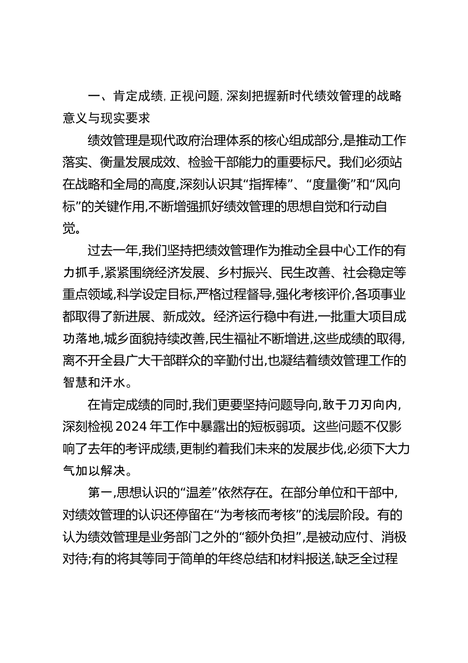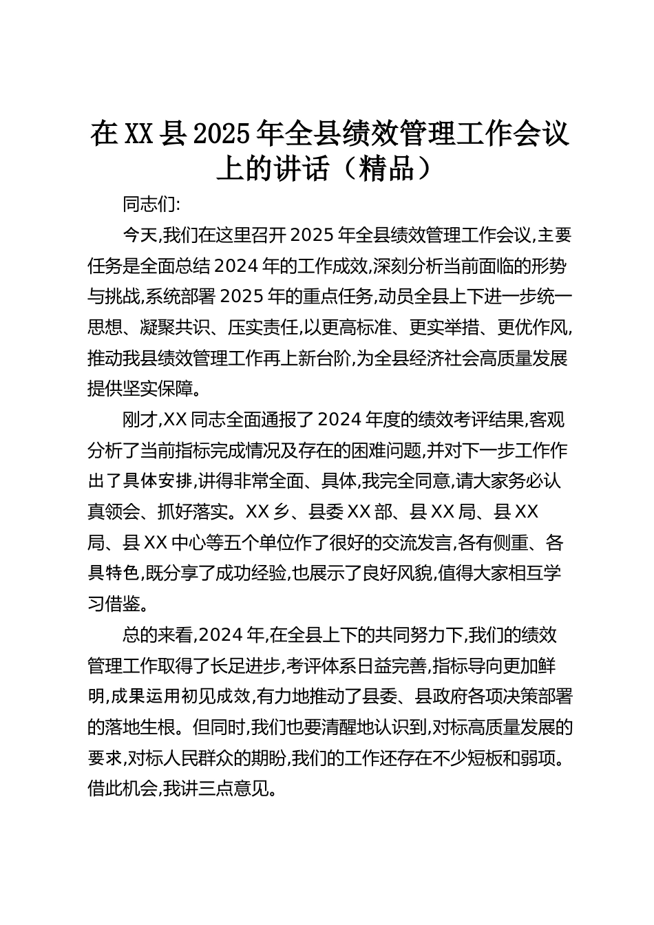 在XX縣2025年全縣績效管理工作會議上的講話(精品)