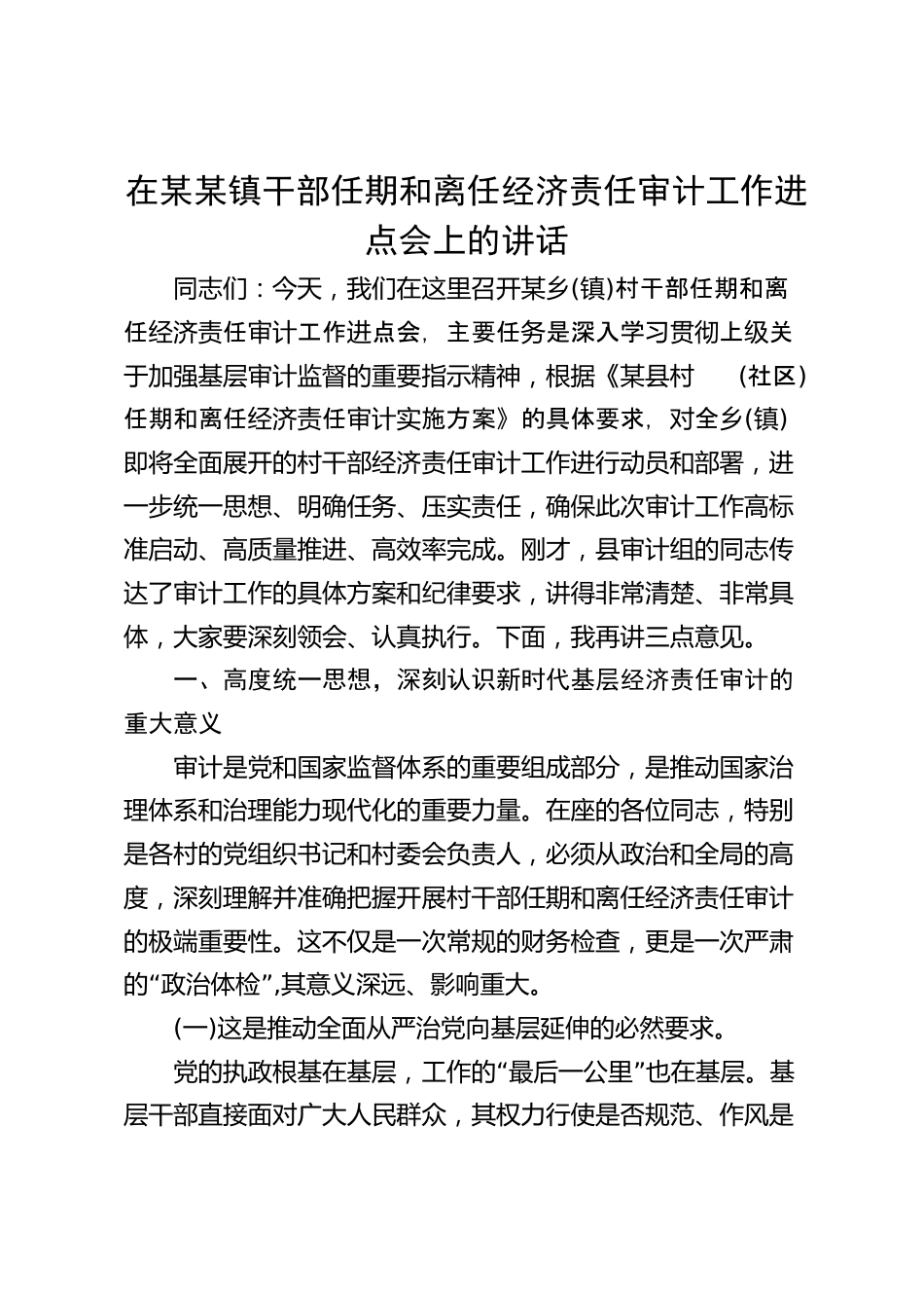 在某某鎮(zhèn)干部任期和離任經(jīng)濟(jì)責(zé)任審計(jì)工作進(jìn)點(diǎn)會上的講話