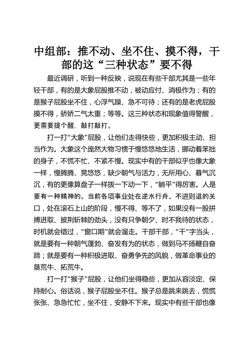 中組部:推不動、坐不住、摸不得,干部的這“三種狀態(tài)”要不得