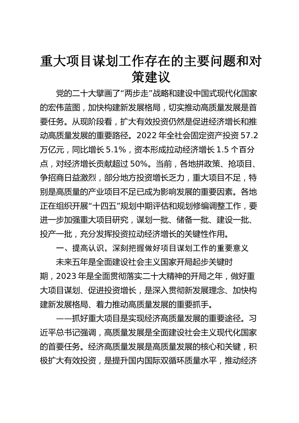 重大項(xiàng)目謀劃工作存在的主要問題和對(duì)策建議