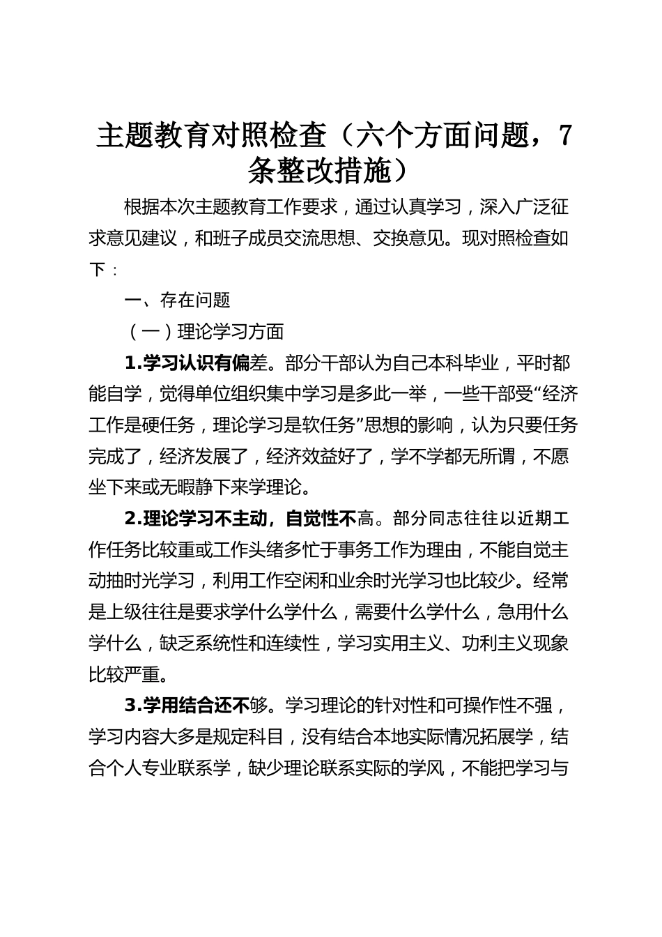 主題教育對照檢查(六個方面問題,7條整改措施)