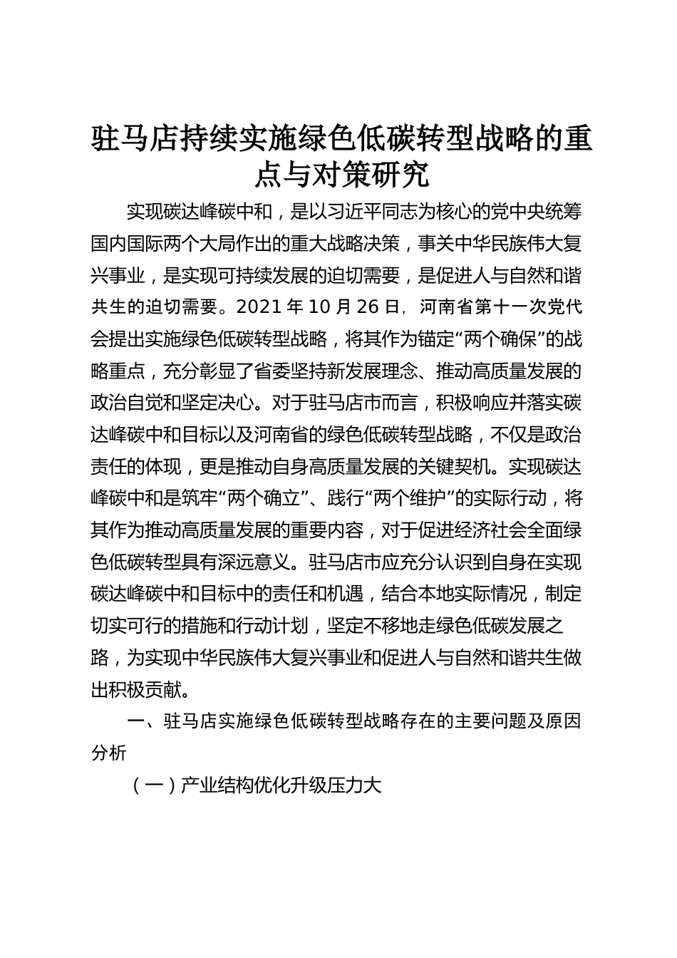 駐馬店持續(xù)實施綠色低碳轉(zhuǎn)型戰(zhàn)略的重點與對策研究VIP免費