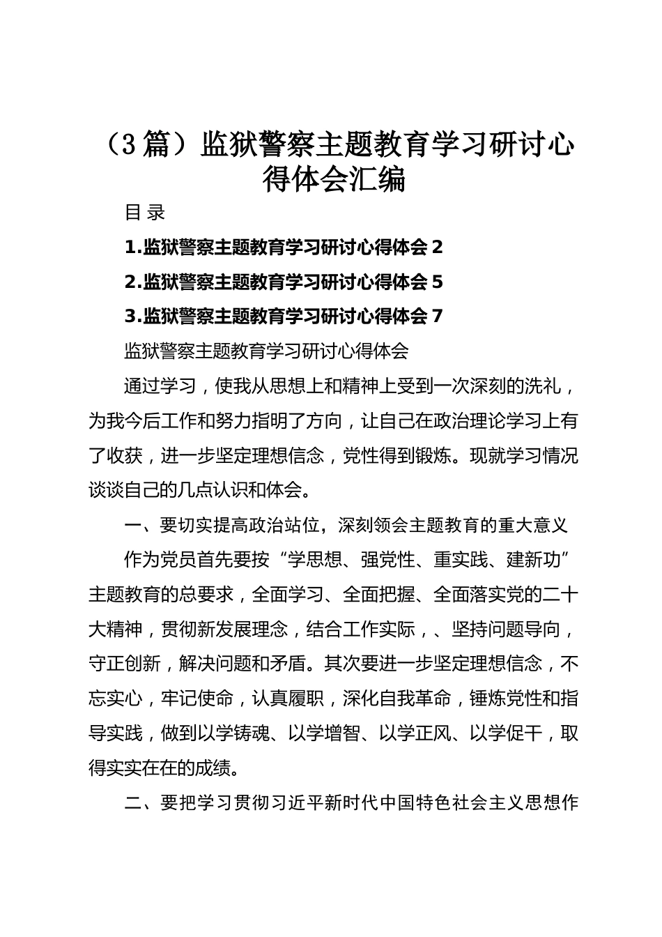 (3篇)監(jiān)獄警察主題教育學習研討心得體會匯編VIP免費