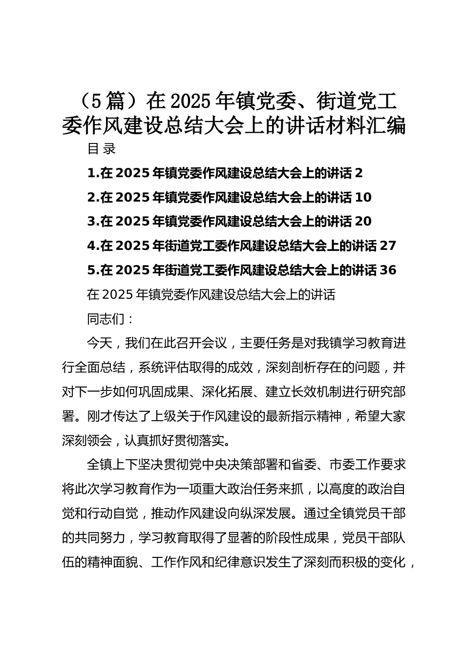 (5篇)在2025年鎮(zhèn)黨委、街道黨工委作風建設(shè)總結(jié)大會上的講話材料匯編