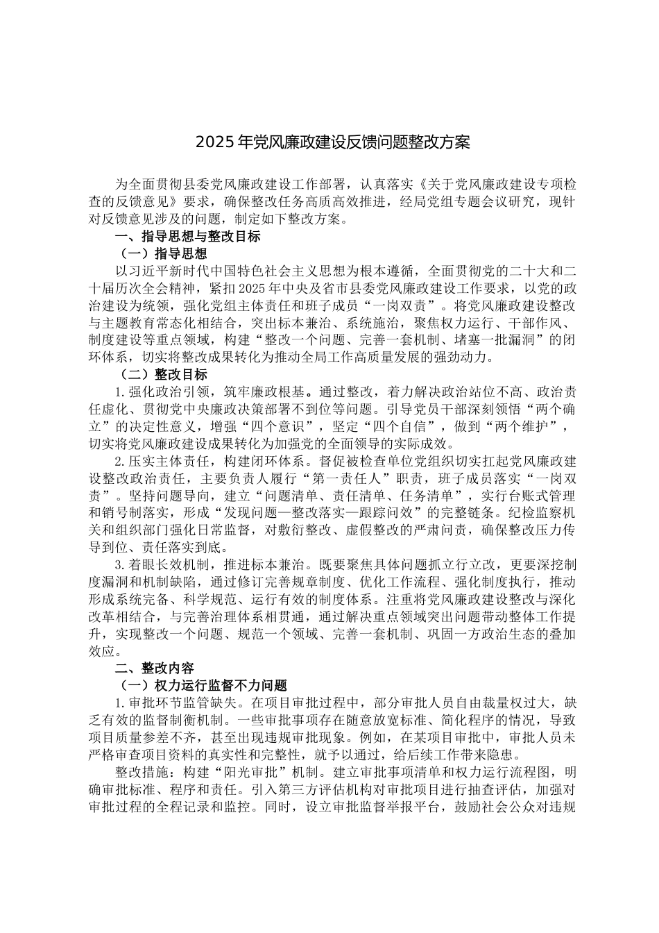 2025年黨風(fēng)廉政建設(shè)反饋問題整改方案