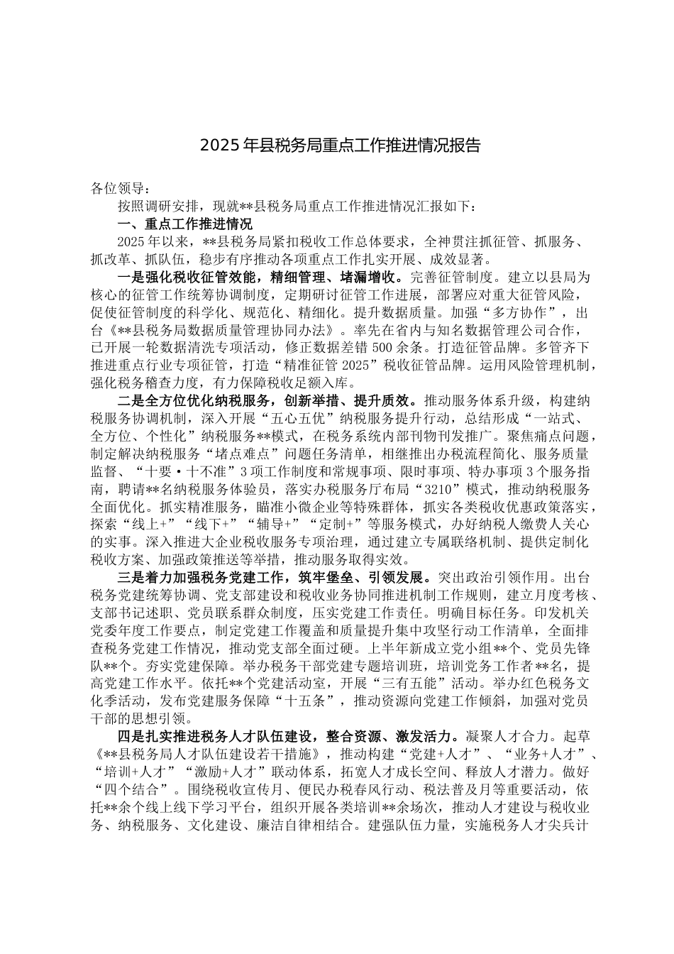 2025年縣稅務(wù)局重點(diǎn)工作推進(jìn)情況報(bào)告VIP免費(fèi)