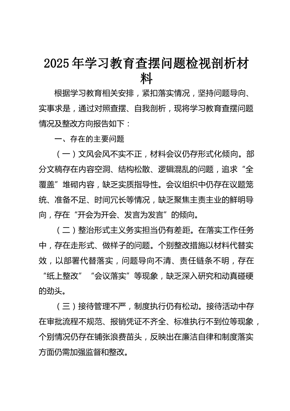 2025年學(xué)習(xí)教育查擺問(wèn)題檢視剖析材料