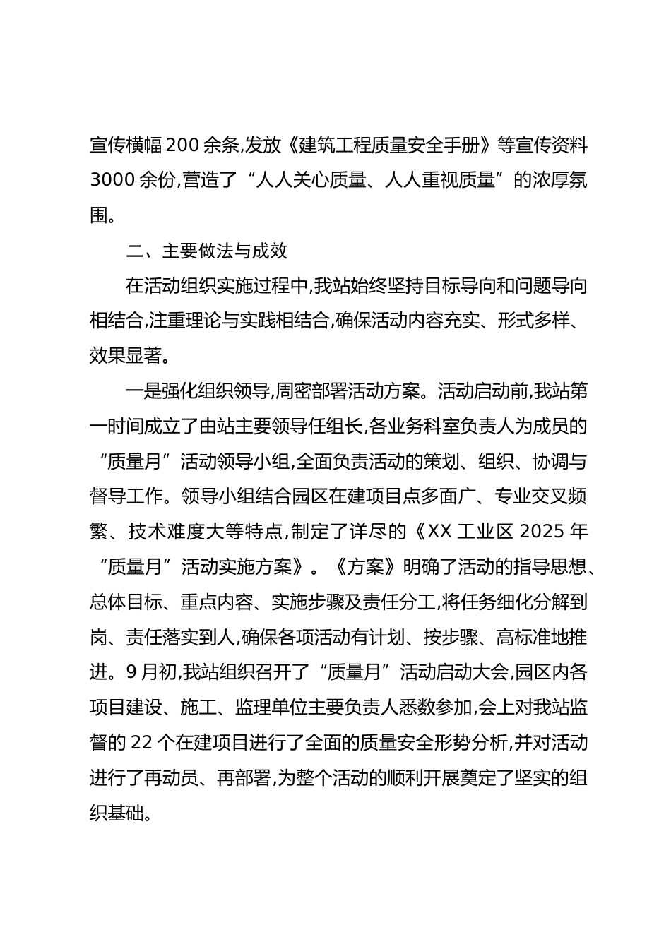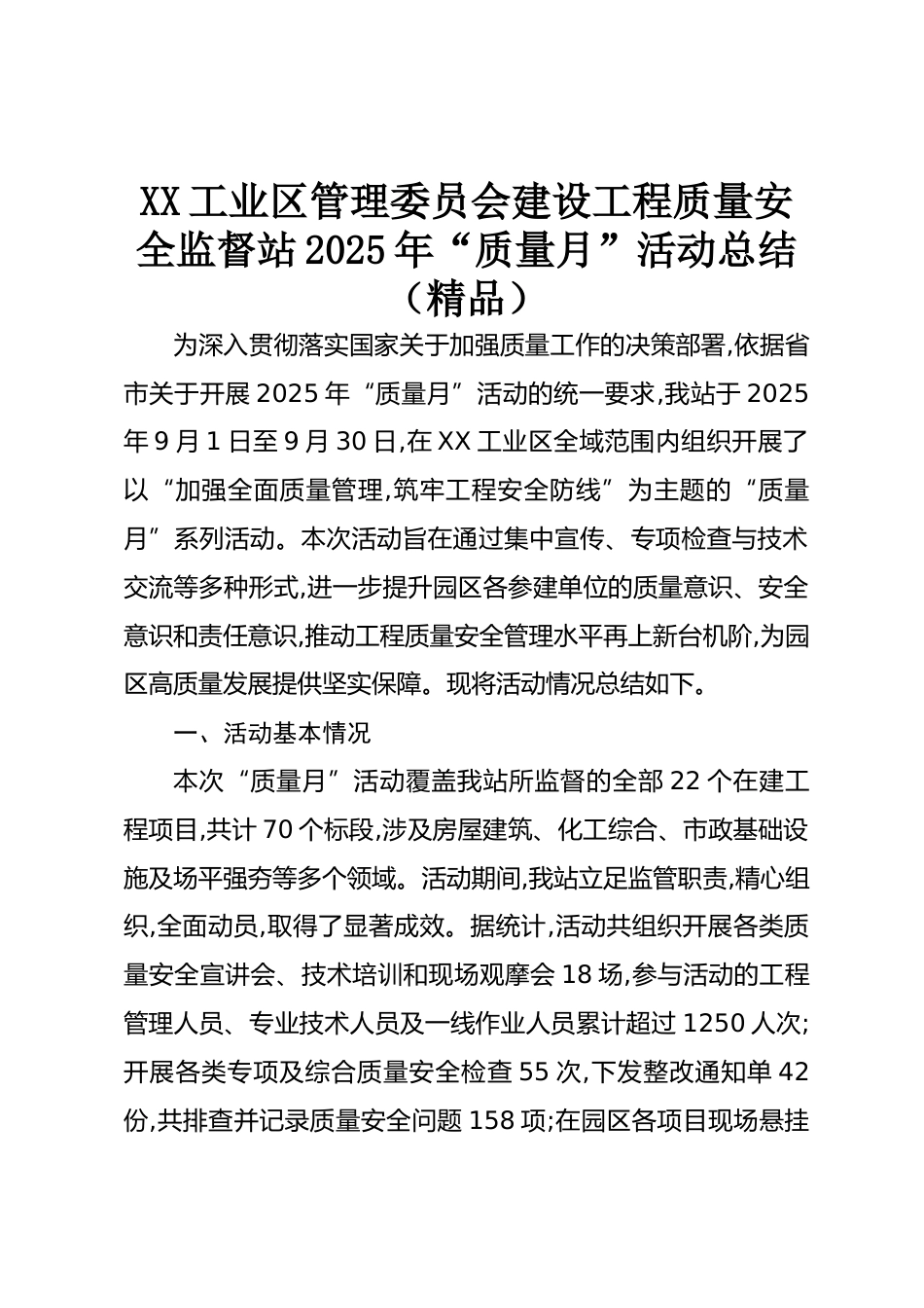 XX工業(yè)區(qū)管理委員會建設(shè)工程質(zhì)量安全監(jiān)督站2025年“質(zhì)量月”活動總結(jié)(精品)VIP免費(fèi)
