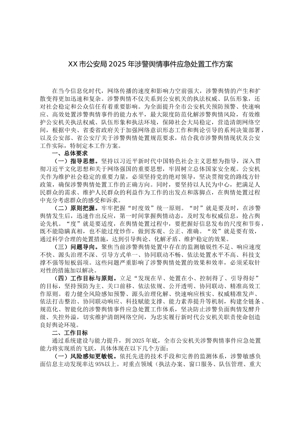 XX市公安局2025年涉警輿情事件應(yīng)急處置工作方案