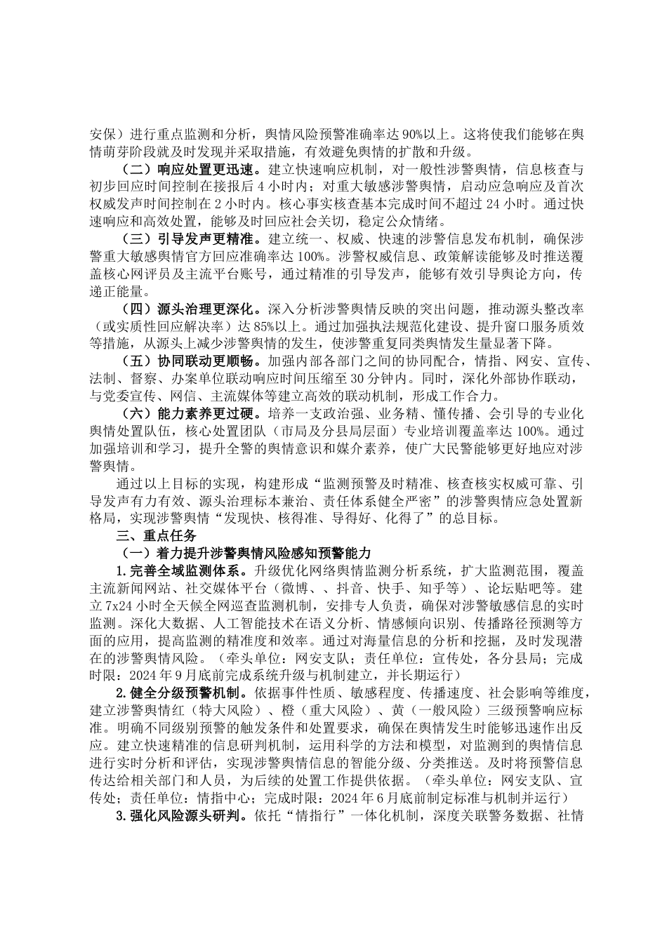 XX市公安局2025年涉警輿情事件應(yīng)急處置工作方案在當今信息化時代,網(wǎng)絡(luò)傳播的速度和影響力空前強大,涉警輿情的產(chǎn)生和擴散變得更加迅速和復(fù)雜。涉警輿情不僅關(guān)系到公安機關(guān)的執(zhí)法權(quán)威、隊伍形象,還對社會穩(wěn)定和公眾信任有著重要影響。為全面提升全市公安機關(guān)預(yù)防預(yù)警、快速響應(yīng)、高效處置涉警輿情事件的能力水平,最大限度防范化解涉警輿情風(fēng)險,有效維護公安機關(guān)執(zhí)法權(quán)威、隊伍形象和執(zhí)法環(huán)境,保障社會大局穩(wěn)定,營造清朗網(wǎng)絡(luò)空間,根據(jù)中央、省委省政府關(guān)于加強網(wǎng)絡(luò)意識形態(tài)工作和輿論引導(dǎo)的系列決策部署,以及公安部、省公安廳關(guān)于涉警輿情處置規(guī)范要求,結(jié)合我市涉...