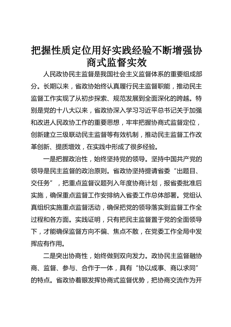 把握性質(zhì)定位用好實(shí)踐經(jīng)驗(yàn)不斷增強(qiáng)協(xié)商式監(jiān)督實(shí)效VIP免費(fèi)