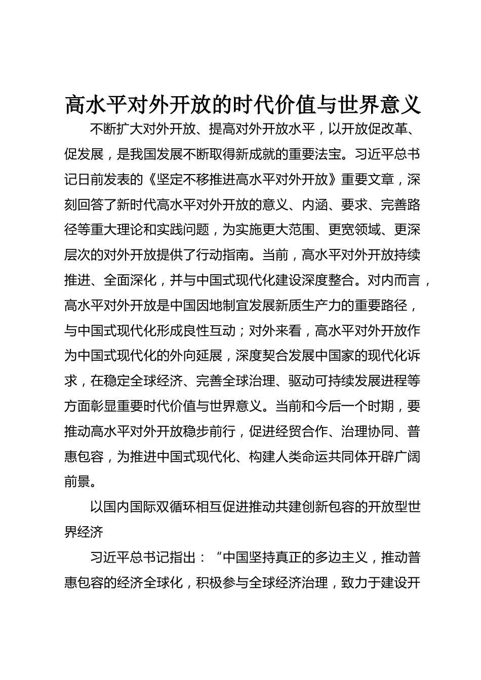 高水平對(duì)外開放的時(shí)代價(jià)值與世界意義