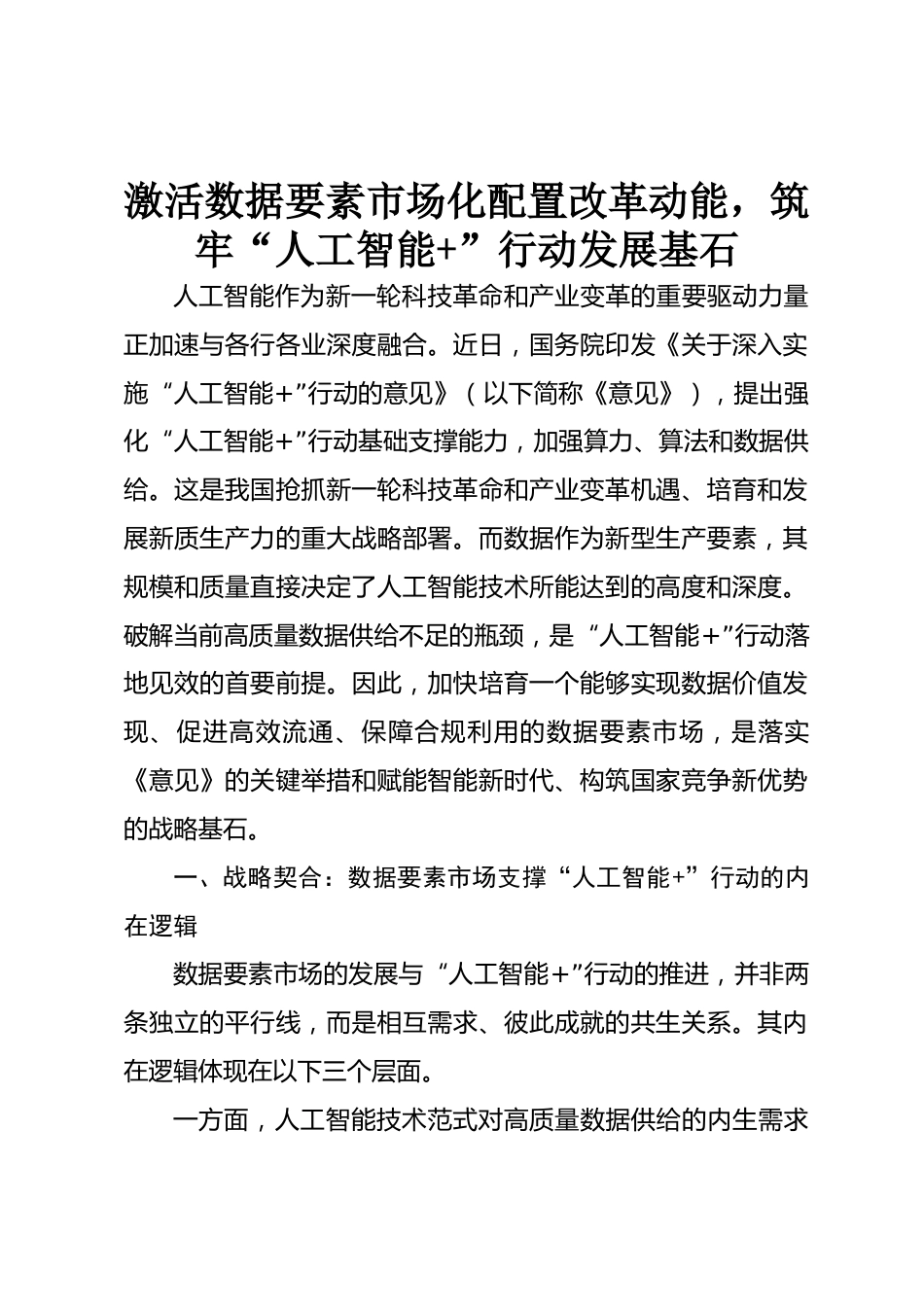 激活數(shù)據(jù)要素市場化配置改革動能,筑牢“人工智能+”行動發(fā)展基石