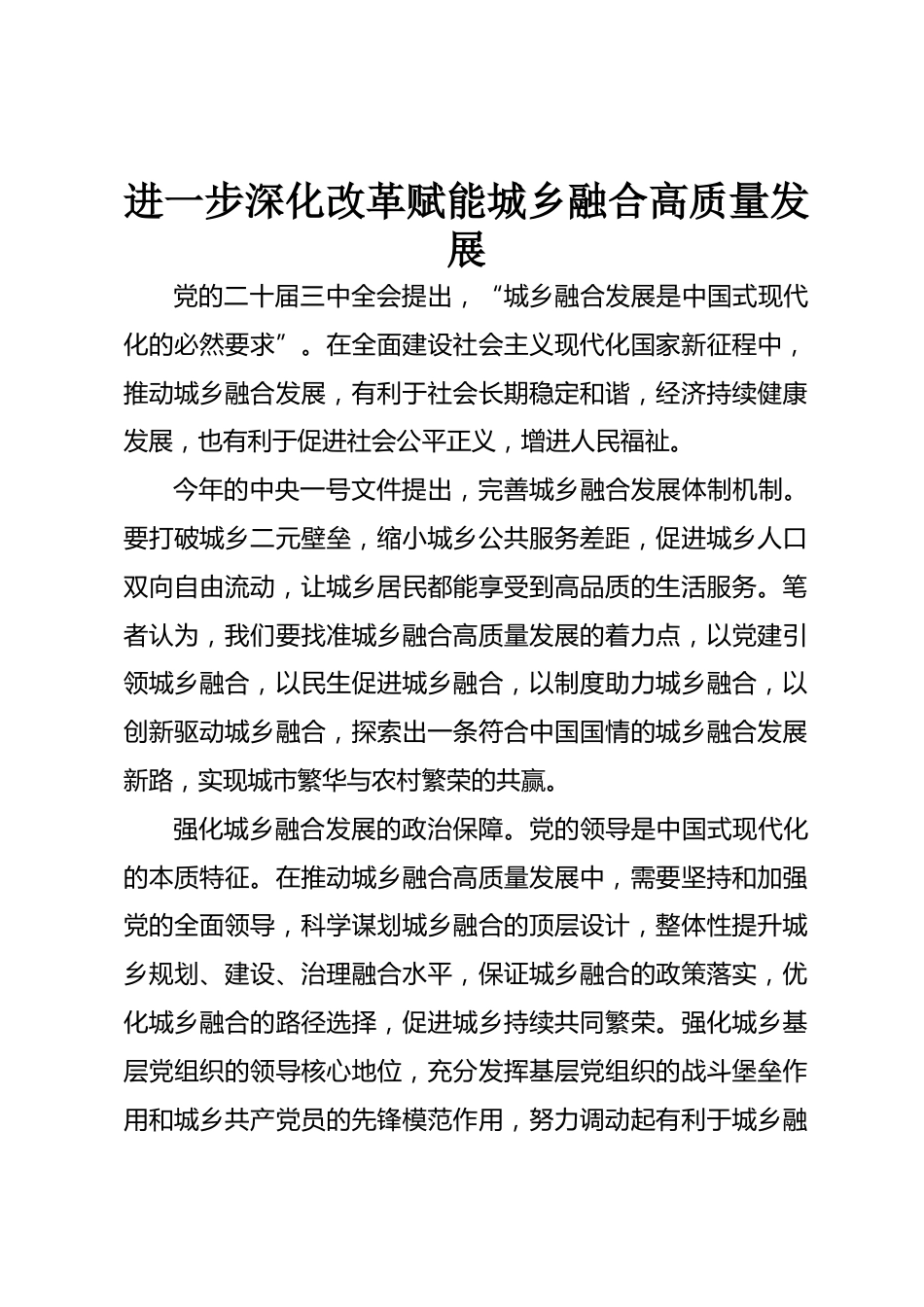 進一步深化改革 賦能城鄉(xiāng)融合高質(zhì)量發(fā)展