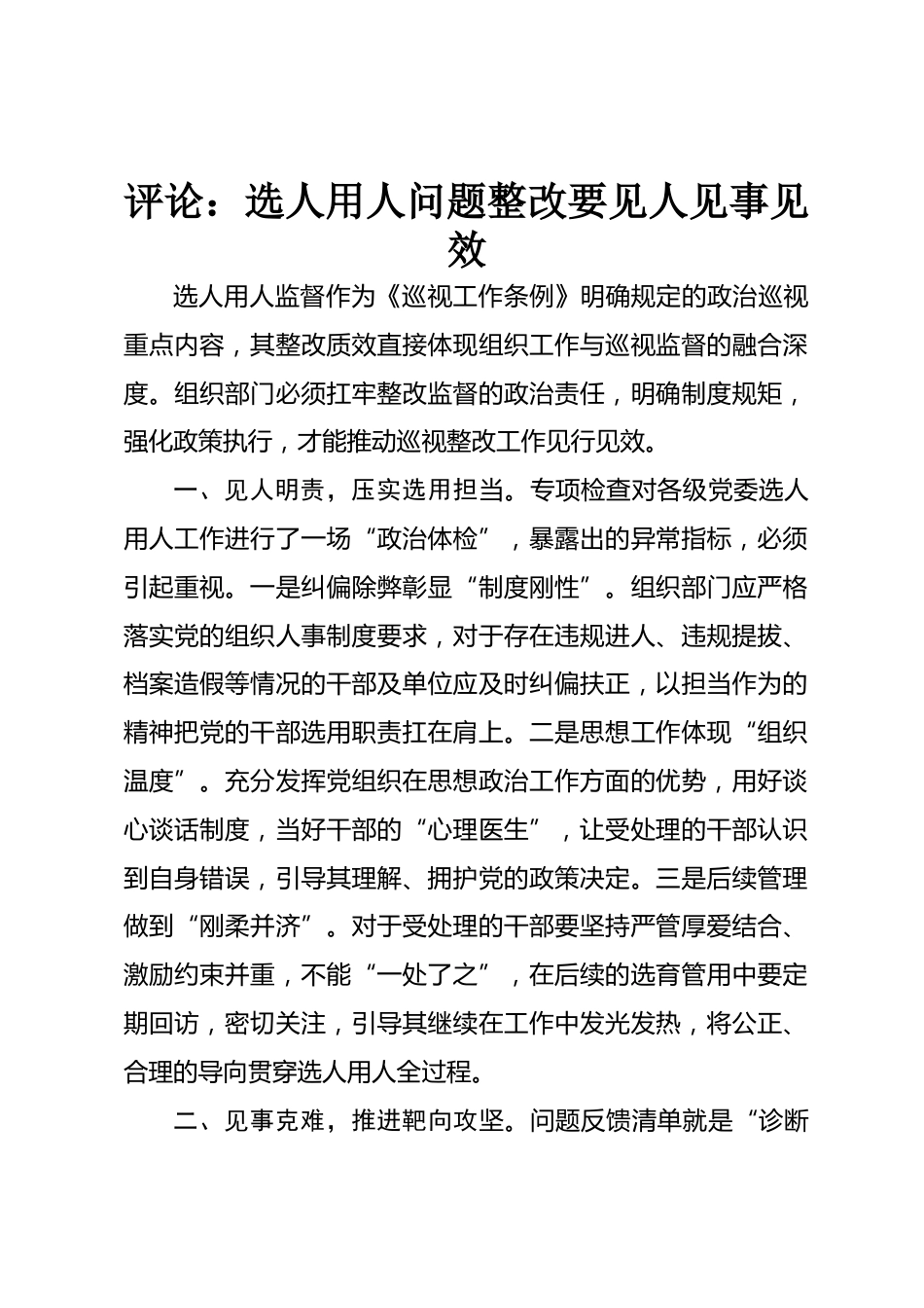 評論:選人用人問題整改要見人見事見效VIP免費(fèi)