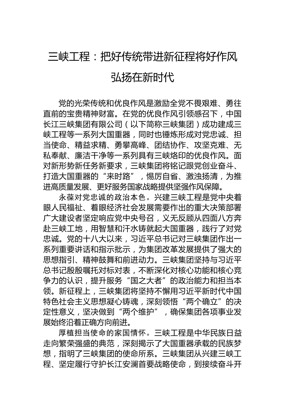 三峽工程:把好傳統(tǒng)帶進(jìn)新征程將好作風(fēng)弘揚(yáng)在新時(shí)代