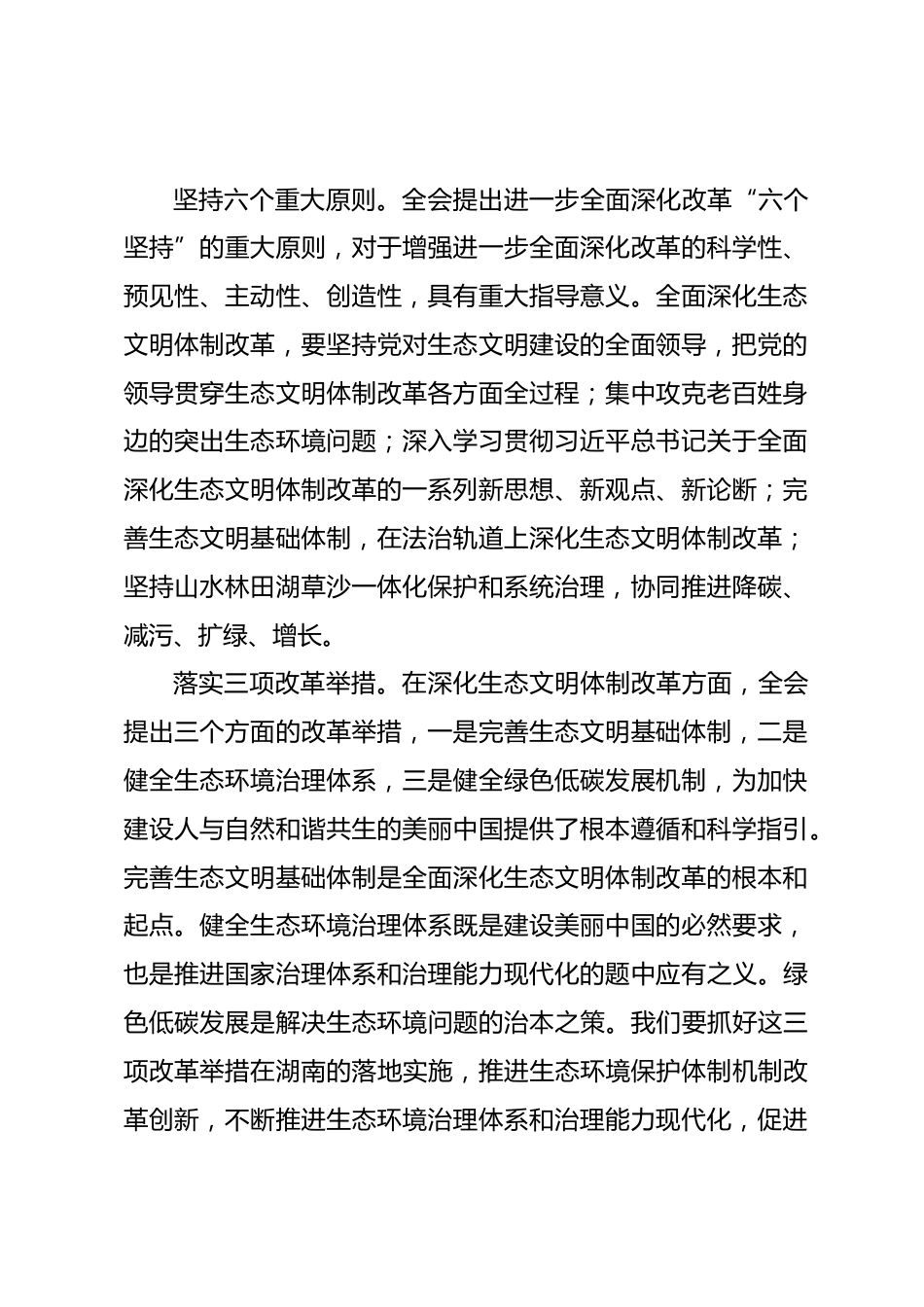 深化生態(tài)文明體制改革繪就美麗湖南新畫卷黨的二十屆三中全會(huì)聚焦美麗中國建設(shè),對(duì)深化生態(tài)文明體制改革作出重大部署,充分體現(xiàn)了以習(xí)近平同志為核心的黨中央對(duì)生態(tài)文明建設(shè)的高度重視和戰(zhàn)略謀劃。全省生態(tài)環(huán)境系統(tǒng)深入學(xué)習(xí)貫徹黨的二十屆三中全會(huì)精神,堅(jiān)定不移深化生態(tài)文明體制改革,以制度創(chuàng)新、體制創(chuàng)新、機(jī)制創(chuàng)新激發(fā)活力、增添動(dòng)力,全面推進(jìn)美麗湖南建設(shè)。準(zhǔn)確把握新時(shí)代深化生態(tài)文明體制改革的戰(zhàn)略部署黨的二十屆三中全會(huì)明確提出了“深化生態(tài)文明體制改革”,深入闡釋和回答了生態(tài)文明體制改革為什么改、往哪里改、怎么改等重大理論和實(shí)踐問題。我們要深刻理解和...