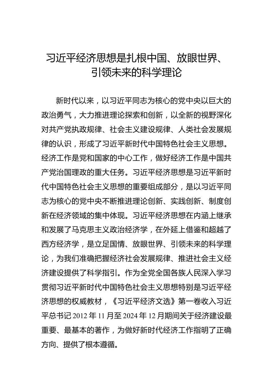 習(xí)近平經(jīng)濟(jì)思想是扎根中國、放眼世界、引領(lǐng)未來的科學(xué)理論