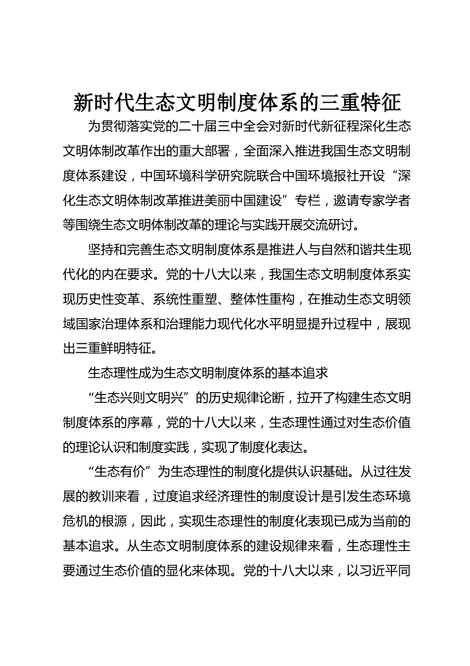 新時(shí)代生態(tài)文明制度體系的三重特征