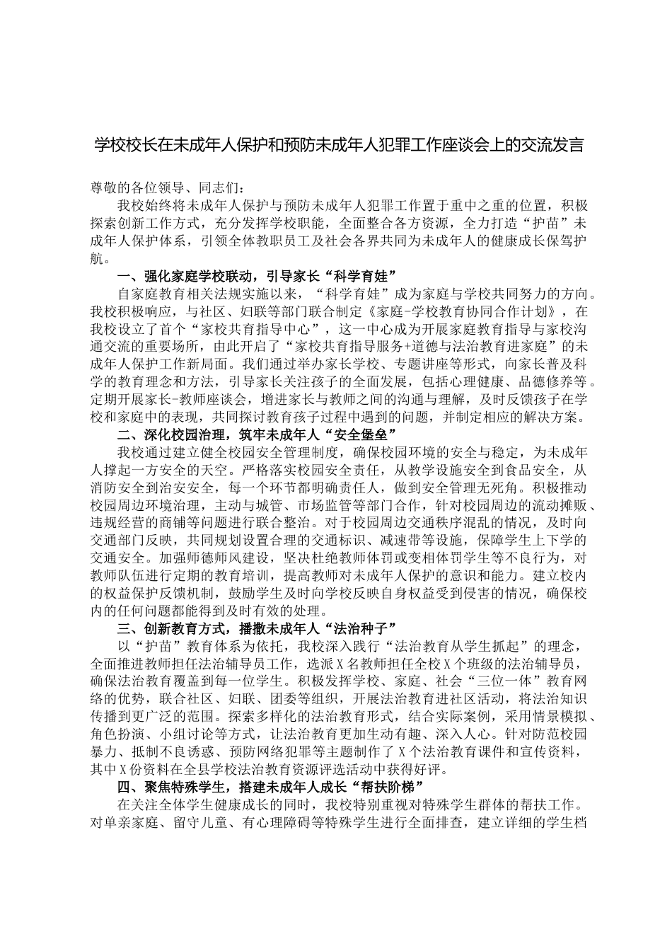 學(xué)校校長在未成年人保護(hù)和預(yù)防未成年人犯罪工作座談會上的交流發(fā)言