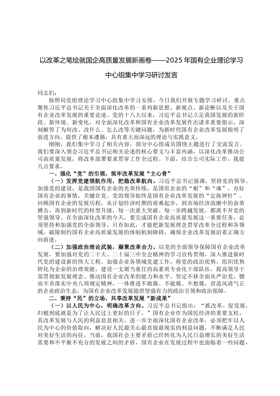 以改革之筆繪就國企高質(zhì)量發(fā)展新畫卷——2025年國有企業(yè)理論學(xué)習(xí)中心組集中學(xué)習(xí)研討發(fā)言