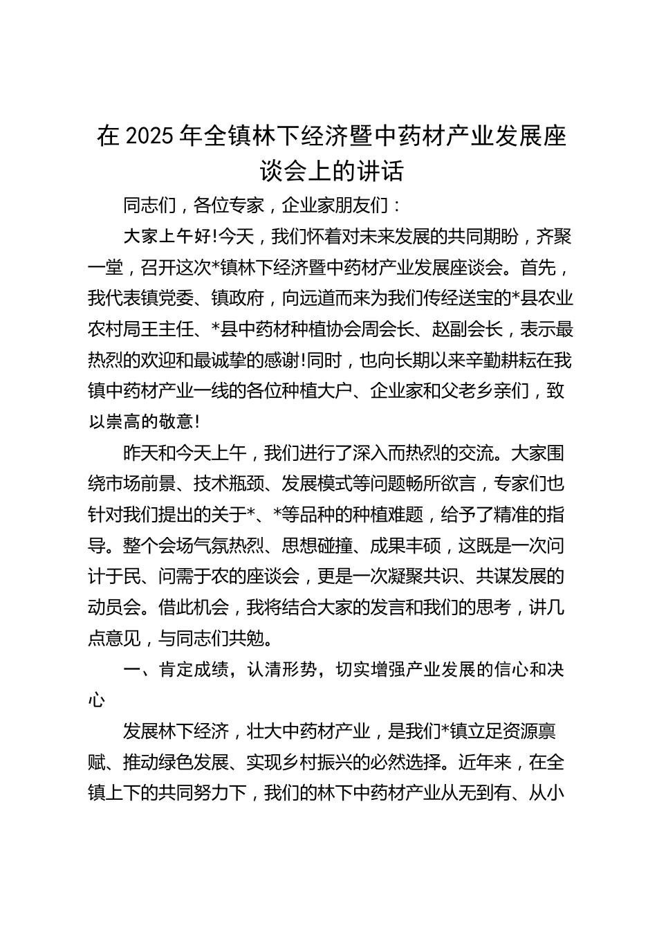 在2025年全鎮(zhèn)林下經(jīng)濟(jì)暨中藥材產(chǎn)業(yè)發(fā)展座談會上的講話VIP免費(fèi)