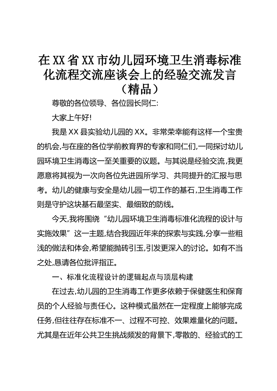 在XX省XX市幼兒園環(huán)境衛(wèi)生消毒標(biāo)準(zhǔn)化流程交流座談會(huì)上的經(jīng)驗(yàn)交流發(fā)言(精品)