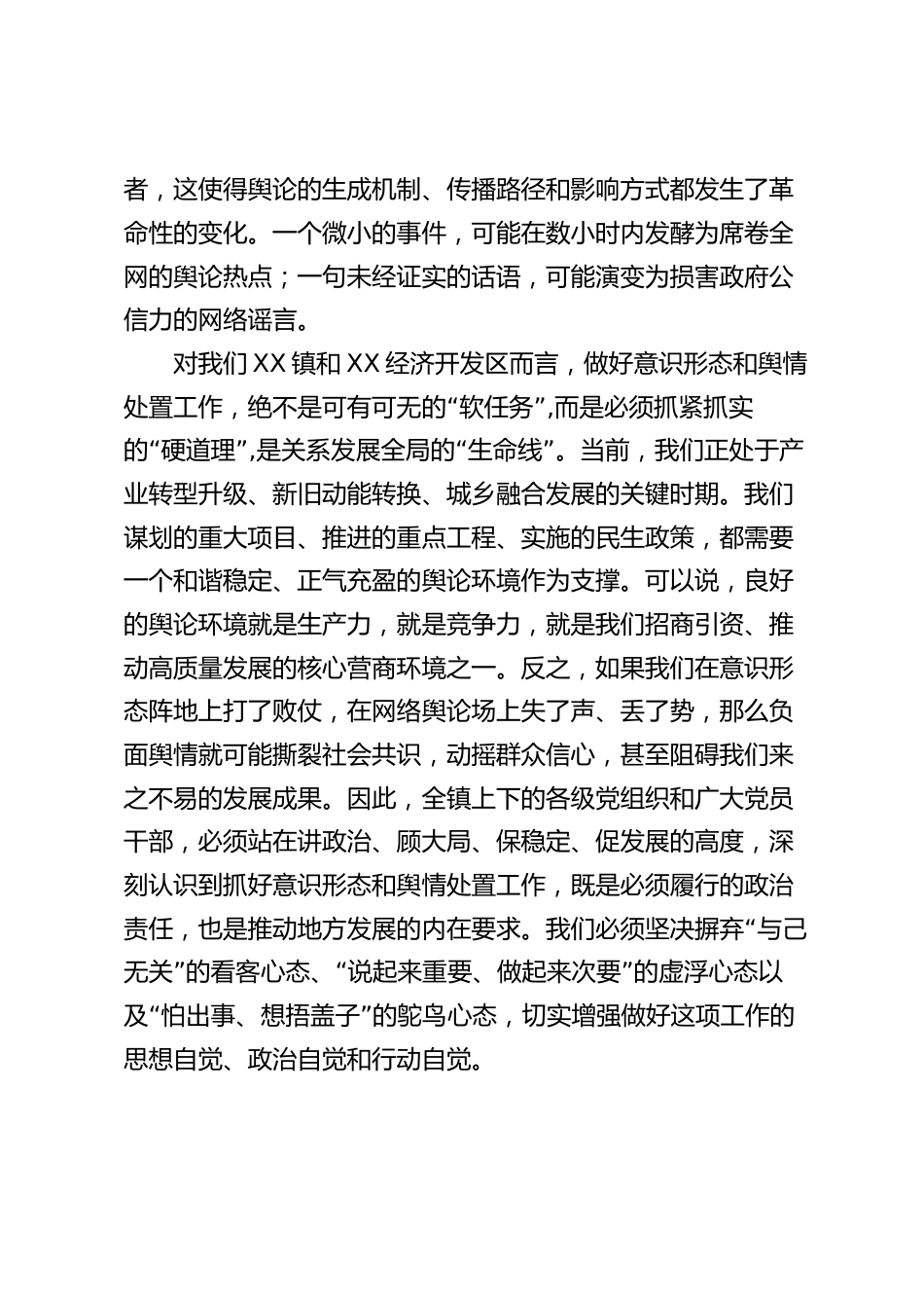 在某鎮(zhèn)意識形態(tài)暨輿情處置工作專題培訓(xùn)會議上的講話
