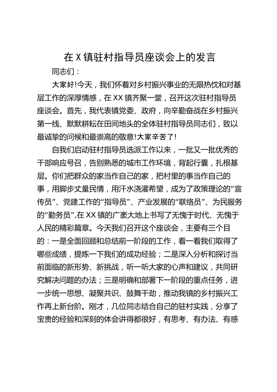 在某鎮(zhèn)駐村指導(dǎo)員座談會(huì)上的發(fā)言